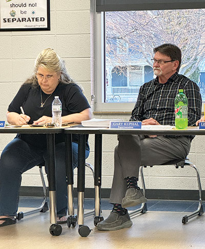 Mabel-Canton School Board Chairman Cristal Adkins presides over the March 19 school board meeting with and Superintendent Gary Kuphal on hand to answer questions. Photo by Charlene Corson Selbee
