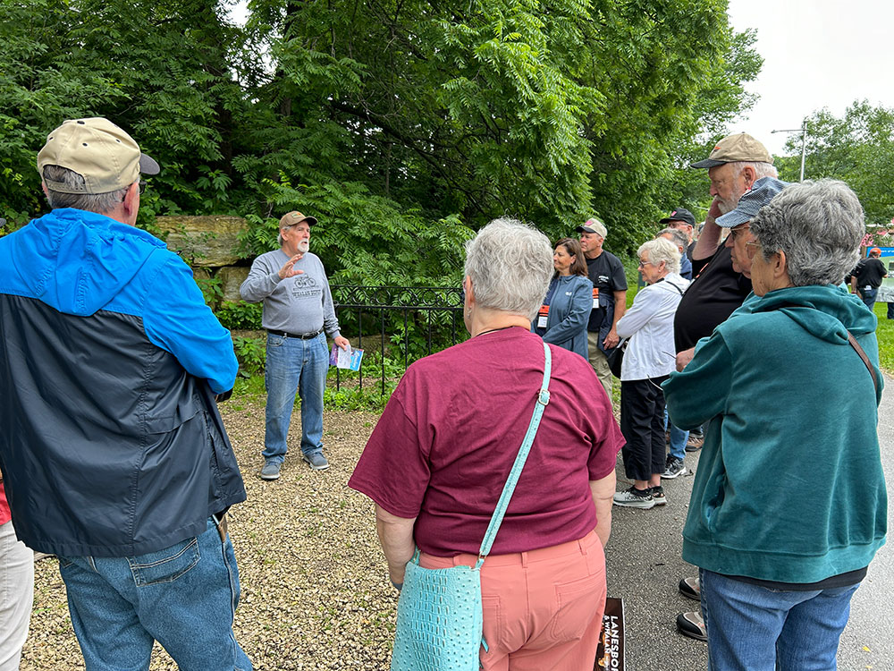 The tour headed west to Lanesboro where local author Steve Harris met the group at the rebuilt depot and shared some of Lanesboro’s history. According to Harris, when officials of the railroad saw the Root River cutting through the gorge at Lanesboro they decided it was a great place for the railroad. With the coming of the railroad, Lanesboro became a booming town.