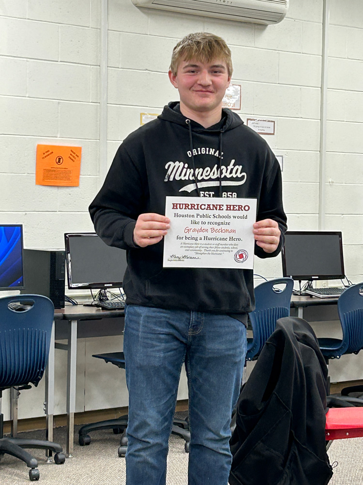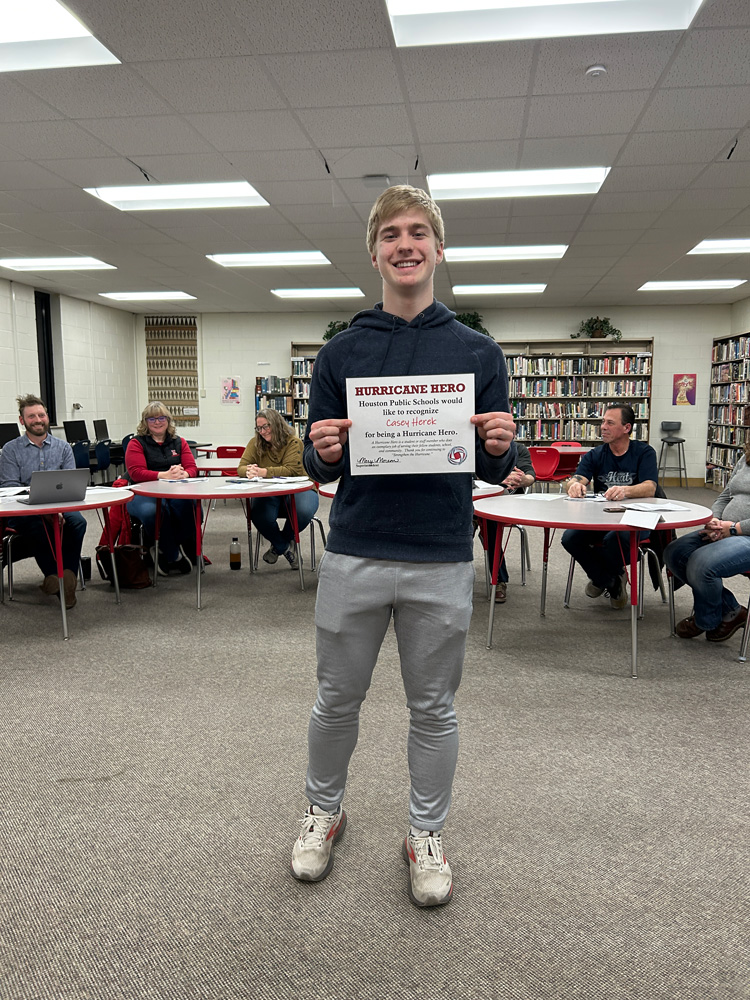 ExCEL Award nominees Avery Kingsley and Grayden Beckman, and Triple “A” Award nominees Austin Sonnek and Casy Herek, were named Hurricane Heroes for January. The ExCEL Award recognizes juniors who are leaders in their school. Grayden Beckman shared that he was most proud of his volunteering at the Scare at the Fair as his community service.