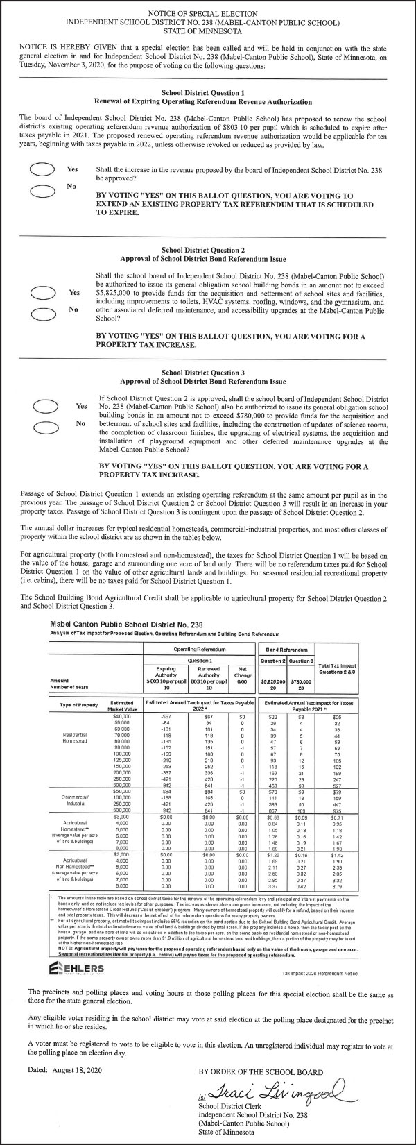 Notice of Special Election Independent School District No. 238 October 26, 2020 by Fillmore County Journal
