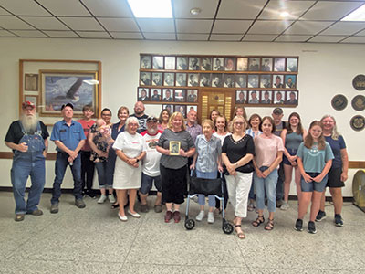At the remembrance on September 4, 2023, family members shared stories with the crowd. “A serious guy who always had a book in his hand.” “He liked to ride his 1930 Harley fast.” Sherburne was conservative and saved his money. His fellow comrades would pay him $5 to do their KP. Sherburne’s mom did not want her son to serve in the war, so he joined the reserves in Winona. He hit a deer coming home for a visit, so his mother took it upon herself to contact the military and said that was too far, so he came home. His mom “took on the Army and won.”