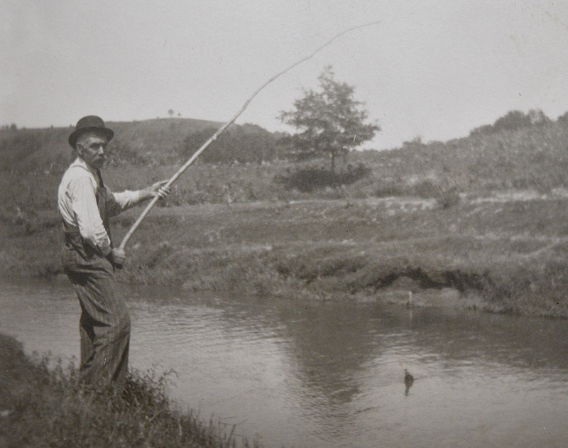 Lynn Carpenter fishing with a primitive pole. Photo courtesy of the Houston County Historical Society
