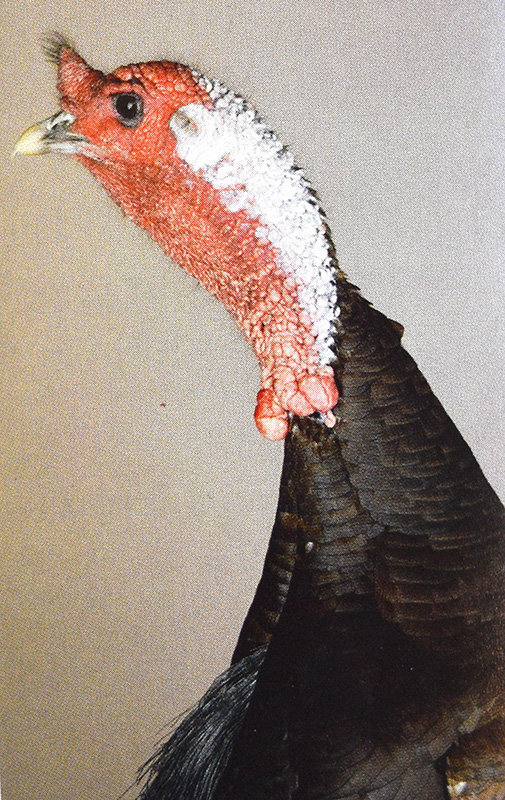 These were domestic Bourbon Red turkeys who resided on the Sheldon family farm. Most of the year, they roosted on large tree limbs on farmyard trees. They flew up to roost at sundown, only to fly down at sunrise to safely wander among the other farm animals.