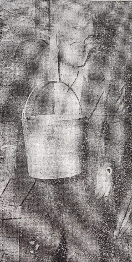 Tony Steinbauer lifts a bucket of water with his ear. Photo courtesy of the Houston County HIstorical Society