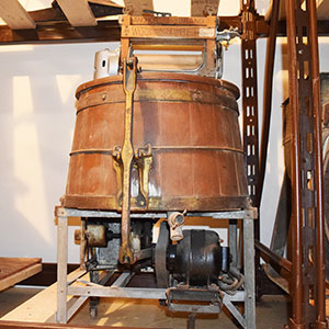 During the summer, the washtubs and washboards would be outside. In winter, clothes were washed in the kitchen. Rainwater from the cistern was pumped by hand and carried into the kitchen to be heated in the wash boiler, a cast iron or copper cauldron in which clothes or soapy water could be heated over a wood-burning stove. The water was then dipped out again and poured into the tubs, which had an attached hand-cranked wringer.