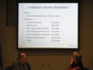 At the January 22 meeting of the Preston City Council, a resolution was unanimously adopted authorizing a donation of $335,000 in cash ($125,000) and land ($210,000) to the state of Minnesota for the construction of the Preston Veterans Home. Councilwoman Holly Zuck was not present, but participated via phone.