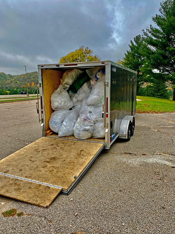 Five short months later, the group had successfully collected 987 pounds of bags. In October 2023, Lion President Tony Becker drove his pickup and trailer full of bags to Mower County Recycling Center to drop off the bags.