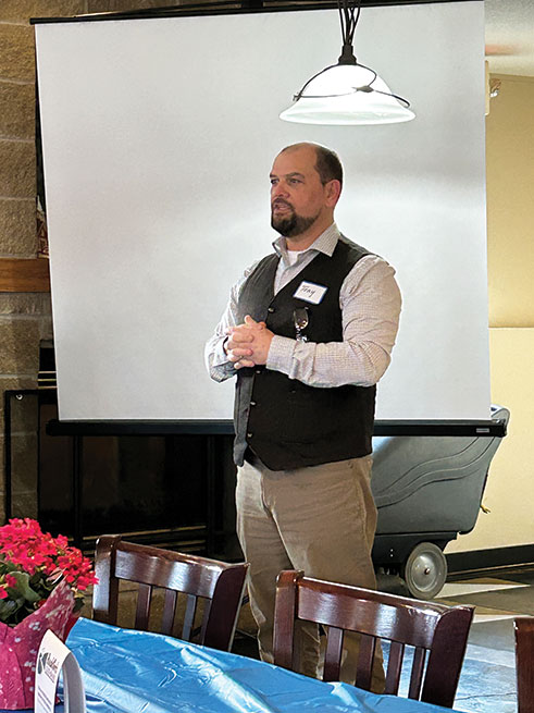 Chamber President Jerad Brown welcomed the R-P Valley Chamber members to their annual meeting. Photo by Wanda Hanson