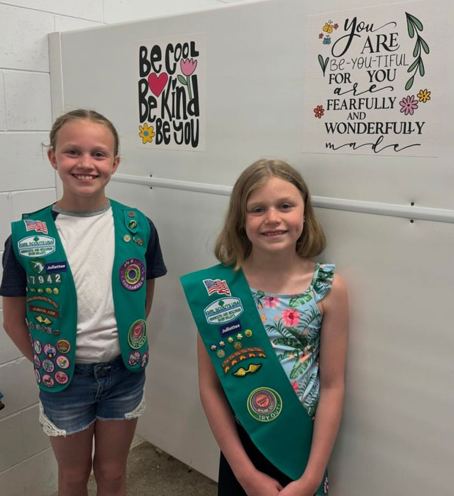 Girl Scouts Kendall and Kiersten O’Donnell were applauded for completing a Bronze Award Project at the Aquatic Center. The girls had identified low self esteem in youth as a problem in the community. They worked to create vinyl posters encouraging self esteem to be posted in the locker rooms.