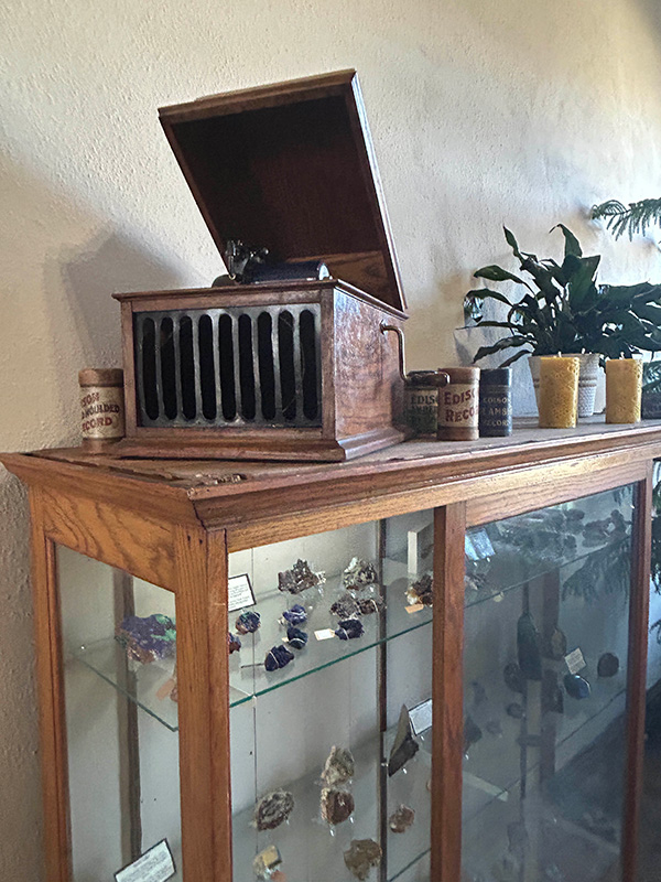 In keeping with the time period of the building, the Bishops found an antique wax cylinder phonograph to provide music in the store.