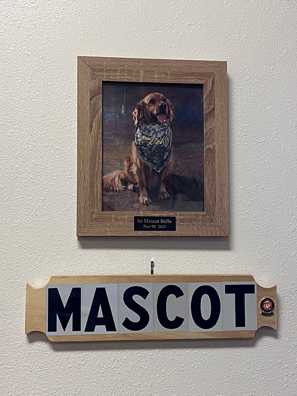 “I knew Bella for the three years she was being trained to be a service dog,” says Commander Butterfield. “After she was certified, Ron’s wife Peg wrote an official request to the Legion Post to adopt Bella as our official mascot. When we brought it up at our meeting it was a short discussion and a unanimous vote to name Bella as our official mascot. Not only is Bella our mascot but she attends funerals and events with our Honor Guard. Bella is not just a mascot or Ron’s service animal, she brings joy and comfort to everyone she greets.”