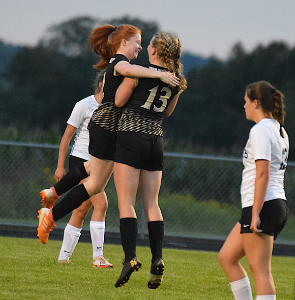 Coach Chris Jandt praised the effort of the team, which was able to overcome a 1-0 deficit despite being shorthanded. “We did not have senior captain Katelynn Seymour due to an injury, and freshman Libby Morey stepped into the center defensive role. Libby and junior Mikaela Konkel were able to slow down P-E-M’s speedy forward for most of the night. This was an outstanding game that the girls played by holding possession and moving the ball. The best game we have played in my seven years, and it’s the first game of the year. It will be interesting to see what we can do moving forward.