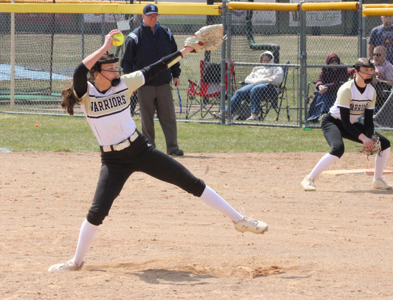 Last year’s section 1AA runner-up Caledonia posted a 3-0 week to improve to 5-0 on the year. Chad Augedahl’s Warriors took down Rushford-Peterson and PEM in TRC action before handling Stewartville in non-conference. Versus the Trojans, Caledonia won 15-0 in four innings. Sophomore pitcher Avery Augedahl recorded all 12 outs by strikeout. She also was 3-for-3 at the plate with a home run (4 RBI, 3 R). Nora Staggemeyer (3-3, 2B, 3B, RBI, 3 R), Adrienne Lange (3-4, 3B, 2 RBI, 3 R), Lily Wiebke (2-3, two 2B, RBI, 2 R), Paizley Lange (2-2, RBI, 2 R), Vivian Kittleson (2-3, 2 RBI, R), and Elsa Blum (2-4, RBI, R) all also had multiple hits. At Plainview, Caledonia scored in every inning but the third, building a 5-0 lead midway thru the fifth. They prevailed 10-3. Augedahl did not give up an earned run while striking out 15 in recording the win (7 IP, 3 H, 3 R, 0 ER, 1 BB, 2-4, 2 RBI). Lead-off hitter A-Lange (3-4, 3 R) contributed six stolen bases. Brairy Proulx (2-4, RBI, 2 R) hit a solo home run. Wiebke (3-4, 2B, RBI 2 R), Staggemeyer (2-4, 2 RBI, R), P-Lange (2-4, 2 R), and Kittleson (2-4, 2B) also did work. The Warriors finished the week off at Stewie on Saturday afternoon. A year ago, the Tigers ended Caledonia’s win streak at 10 courtesy of a 2-1 win. The re-match saw Warrior leadoff A-Lange begin the game with a solo home run, blasting a shot to left through a heavy cross wind. It was the game’s only run. Augedahl took it from there. The Tigers did not get good aluminum on any of her pitches, as she tossed a two-hitter (7 IP, 0 R, 0 ER, 2 BB, 15 K). The two hits were an infield chub (where the runner was incorrectly called safe at first) and a lazy fly-ball that fell along the left field line. Both led to the Tigers’ only two threats. The infield single loaded the bases in the third, but a ground-out ended the jam. The double came in the seventh, but Augedahl struck out the next two Tigers, ending the game, a 1-0 Warrior win. Caledonia had five hits, all sharply, by A-Lange (1-3, HR, RBI, R), Blum (2-4), Wiebke (1-3) and Kittleson (1-3). Stewie pitchers Addie Eckerman (4 IP, 4 H, 1 R, 1 ER, 0 BB, 8 K) and Sydney Klar (3 IP, 1 H, 0 R, 0 BB, 7 K) combined to strike out 15, as the game had 30 strikeouts. The Warriors (4-0, 5-0) started the week #9 in AA, but are up to #6. Augedahl is 5-0 with a 0.00 ERA and 62 strikeouts in 35 innings pitched.