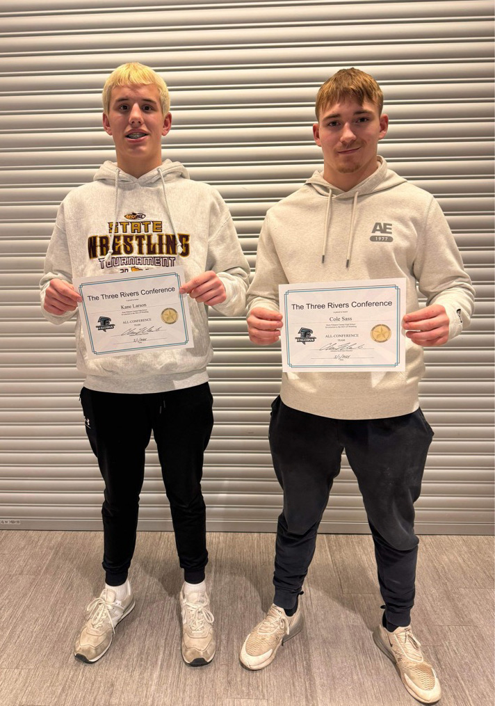 FCLMC wrestling held its awards banquet. The Wolves’ two All-TRC selections were sophomore Kane Larson (left) and junior Cole Sass (right).