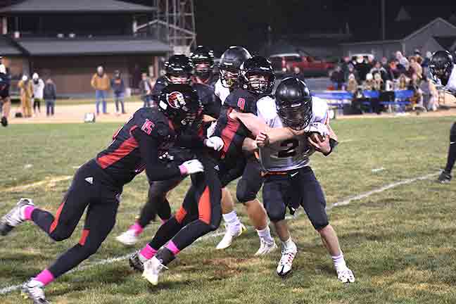 TACKLES (solo + assists): Jacob Olerud 16 (8+8), Noah Blackburn 10 (4+6), Elijah Solum 10 (3+7), Caleb Griffin 9 (7+2), Ethan Crouch 6 (3+3), Logan Brumm 6 (3+3), Emmet Engeldinger 6 (2+4), Tysen Grinde 3 (2+1), Jaxon Strinmoen 3 (1+2), Sylas Flatin 1 (1+0), Noah Heppner 1 (1+0), Troy Reinhardt 1 (1+0)
