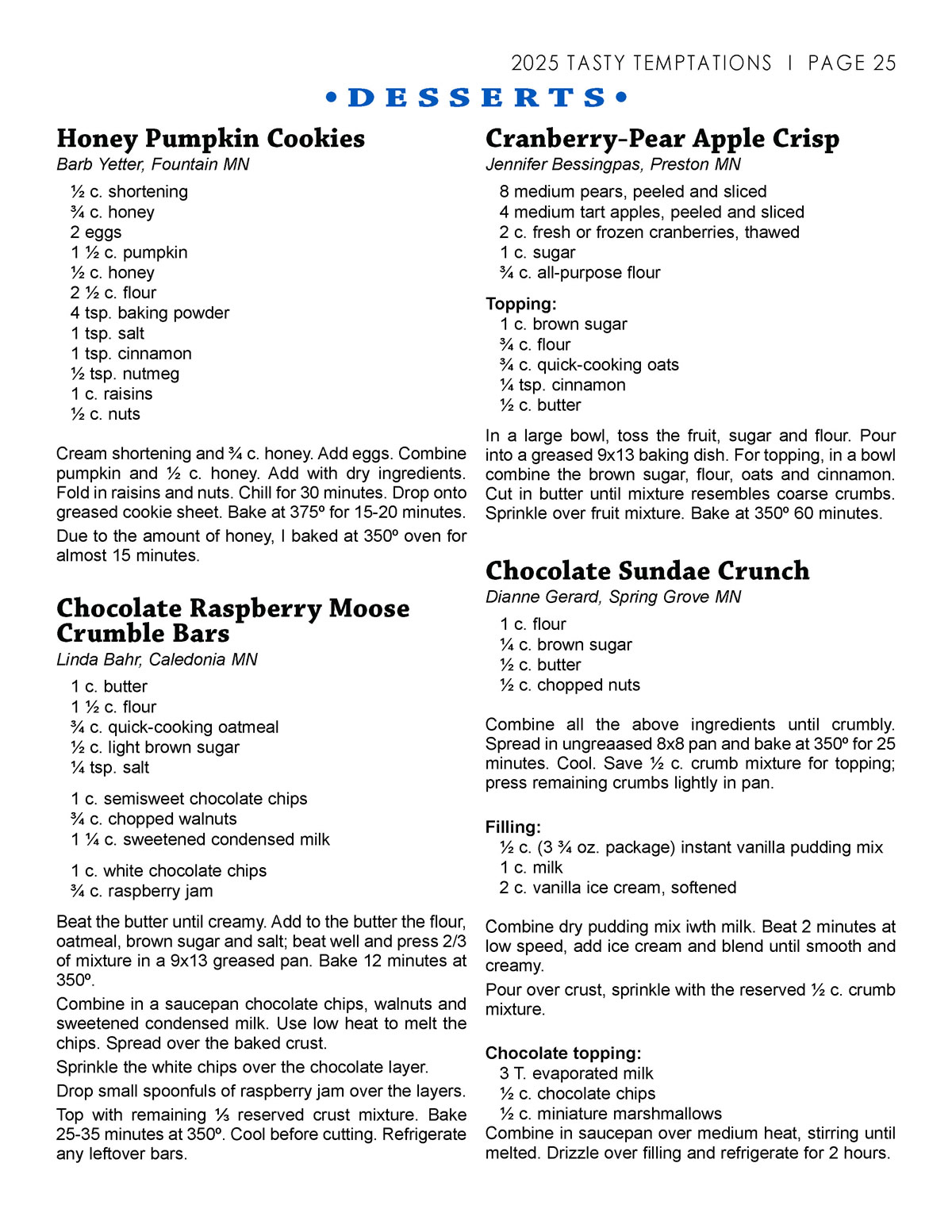 2025 Tasty Temptations Cookbook