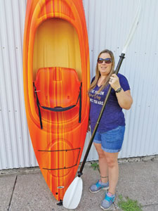 Kara Noren of Ettrick, Wis., stands next to her brand new kayak she won in a recent contest.