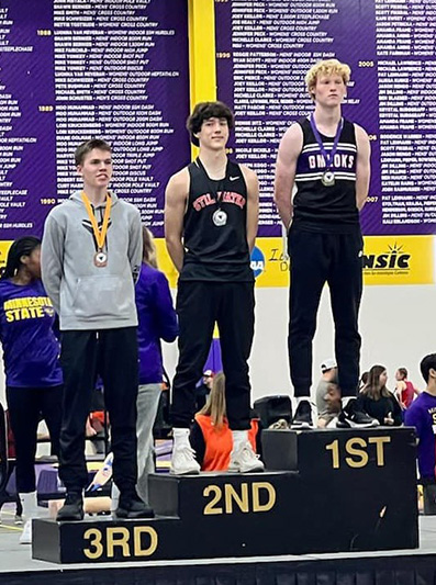 MSU-Mankato Indoor Showcase (At a mainly AA and AAA Meet, Caledonia/Spring Grove’s boys (32) took sixth of 26 teams while GMLOKS took 14th and LFCMC 19th. Hudson (79) took first over Stillwater (65). GMLOKS’ girls (22) took ninth of 30 teams with LFCMC tying for 24th. Stillwater (58) took first over Holmen (49). C/SG’s Josh Beardmore took first in the Long Jump (26 entrants), second in the 60-meters (60 entrants), fifth in the 200-meters (42 entrants), and was on the fourth place 4×200 team (also Eli Staggemeyer, Owen Staggemeyer, Gabe Curley), an event with 21 teams. He was the boys meet MVP, scoring the most individual points. Teammate Fischer Wait (400 > 4th of 51) also finished top five. GMLOKS’ Sam Snitker won the 29-entrant High Jump with a program-record leap of 6’6”. Breeley Galle (Triple Jump > 6th of 22, 60-hurdles > 9th of 26) had two top 10 finishes. Chantle Reiland (60 > 3rd of 67), Gracie Foster (60-H > 4th of 26), Lexy Foster (Shot Put > 4th of 39), and Ayden Howard (Triple Jump > 5th of 24) also finished top 10 for team-GM. The GMLOKS girls 4×200 (Reiland, Foster, Galle, Lydia Redman) took sixth (of 19). LFCMC’s top 10 finishers were Jayce Kiehne (800 > 2nd of 34), Henry Liew (L-Jump > 7th of 26), and Lucas Nikoloski (Shot > 9th of 51). The girls 4×400 (Lillyan Kiehne, Lynsey Ruen, Kinley Soiney, Kammry Broadwater) took 7th of 13, the 4×800 (Brookyn Simon, Kiehne, Autumn Rakosnik, Broadwater) took 4th of 8)