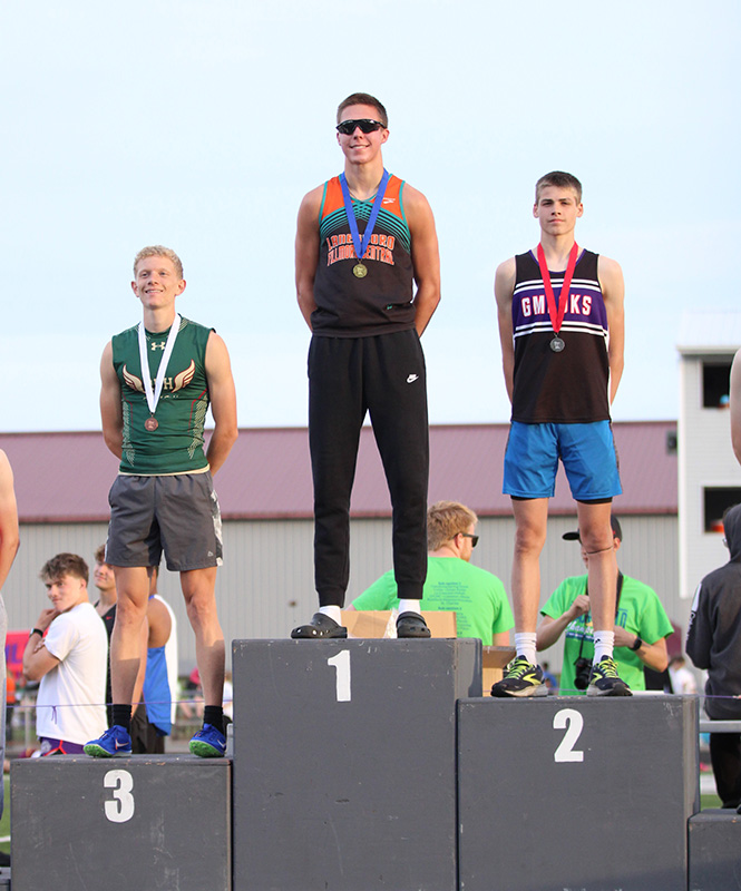 GMLOKS’ program got five girls and two guys to state, and did so by grabbing four section titles. Junior sprinter Chantle Reiland led the way. Reiland not only won the 100 and 200-meter races, but she did so by setting 1A meet records in both. Her 100 time (12.30) topped St. Charles’ Lindsey Root (12.46) from 2021, and her 200 time (25.11) topped former teammate Anika Reiland (25.34) from last year. C-Reiland repeated as 100 champ and in making state in both events. She was last year’s state champ in the 100. Reiland also qualified for state in the Long Jump, taking third (17’1 ¾”) but making it by standard (16’10”). She teamed with Breeley Galle, Gracie Foster, and Lydia Redman to keep the GMLOKS girls 4×200 state tradition going. The foursome (1:45.00) was section runner-up to Chatfield (1:44.15), which set a meet record (topping last year’s GMLOKS group). Additionally, both Galle and Foster made state in the 100-meter hurdles. Galle (15.92) took fourth and Foster (15.94) fifth, but each went by standard (16.06). Both athletes finished top eight in the 300-hurdles (Galle sixth, Foster eighth) and Triple Jump (Foster sixth, Galle seventh) as well. Two-time defending section champion in the Discus and Shot Put, Lexy Foster, only defended one of her crowns. She was not able to get a Discus throw to score Day 1, but she won the Shot Put title on Day 2 with a throw of 39’6 ½”. It was thus her third straight 1A Shot Put title. She took third at state last year. Also winning a section title was High Jumper Sam Snitker. The senior cleared 6’8” to top Triton’s Pierce Petersohn (6’6”) for the title. Petersohn had jumped 6’10” and beat Snitker at the True Team meet. Finally, Tate Georgen (1:57.18) took second to three-time event champ Jayce Kiehne (1:54.66) of LFCMC in the 800-meters. Georgen thus made state. Additionally, Lauren Queensland (High Jump), Caisa Kolling (Discus), and Beau Wiersma (L-Jump) took fourth. Wiersma (20’6 ¼”) neared state standard (20’10”). Ayden Howard (Triple Jump, L-Jump) and Kaleb Yunker (300-H, 110-H) each took fifth and eighth. Amelia McCabe (Pole Vault) took fifth, Naomi Warmka seventh (1,600). The boys 4×400 (Erik Shaw, Carter Glynn, Georgen, Yunker) took fifth while the 4×100 (Wiersma, Nathaniel Drees, Zach Reiland, Howard) and 4×800 (Drees, Glynn, Shaw, Georgen) took sixth.