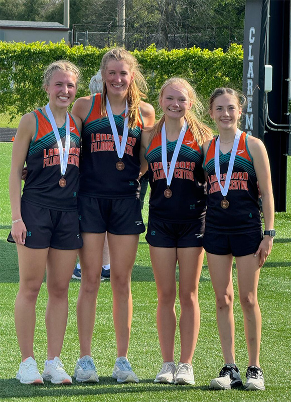LFCMC was not limited to the performances of its top senior male runner and a trio of distance relays, but said efforts are a good place to start. Jayce Kiehne won his third straight 800-meter section title (1:54.66), grabbing the Burros their only section title. It is his fourth 800-meter state berth. He was also the anchor on the runner-up 4×400 team (also Mason Howard, Luke Ruen, Isaac Snyder) that took second (3:26.12) to Cotter (3:24.28). On the girls’ side, both the 4×400 (Kinley Soiney, Sahara Morken, Kammry Broadwater, Lillyan Kiehne) and 4×800 (Autumn Rakosnik, Morken, Broadwater, Kiehne) made state. Each took third and qualified by standard. The 4×400 ran 4:08.55. Standard was 4:08.82. The 4×800 ran 9:54.18. Standard was 9:59.01. LFCMC’s first three state qualifiers were on Day 1. Broadwater was runner-up (112’6”) to L-A’s Georgia Mundt (116’11”) in the Discus to secure a berth. Rakosnik (11:40.89) was runner-up to Cotter’s Sonja Semling (11:29.68) in the 3,200-meters to qualify. The eighth grader thus makes state in both cross country and track and field this year. Boston Wright (12’4”) was runner-up to Pine Island’s C.J. Tree (12’10”) in the Pole Vault to carry on good LFCMC vaulting tradition. Parker Storhoff made state last year. Addie Miner, Madison Simon, Kassidy Broadwater, and Ashley Miner have gone for the girls in recent years. Finally, Lucas Nikoloski repeated in making state. Last year’s 1A champion in the Discus finished fourth this year (152’11”), but went by standard (143’4”). Teammate Michael Rein took seventh (143’0”) and narrowly missed by standard (four inches). The boys 4×200 (Howard, Michael Rein, Henry Liew, Greg Kennedy) took fourth. Kyla Hellickson (High Jump) took fifth. Brody Niemeyer (Shot Put) took sixth. Luke Ruen (800), Riley Grant (1,600), the girls 4×100 (Charlotte Ferrie, Aubrey Daniels, Soiney, Bailey Erwin), girls 4×200 (Daniels, Soiney, Sari Rein, Erwin), and boys 4×800 (Maddex Rindels, Snyder, Jaxon Huntington, Landon Sethre) each took eighth.