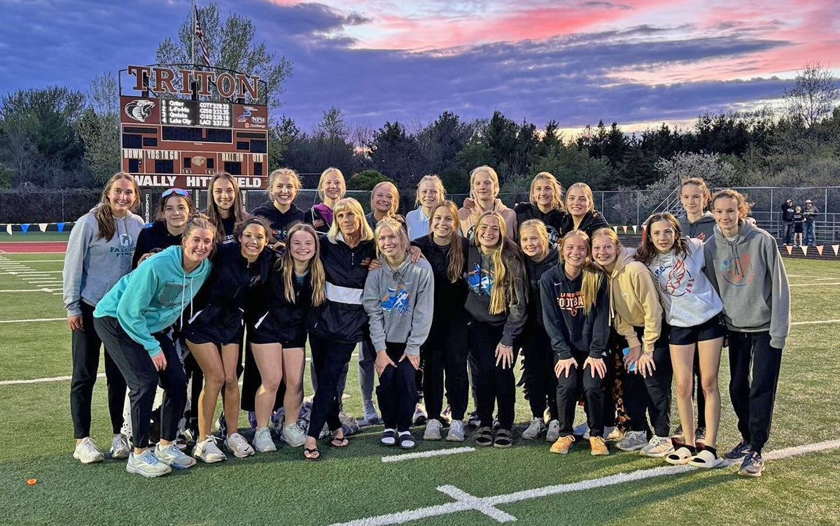 (GMLOKS’ girls (103) topped LFCMC (62). GMLOKS’ boys (87) topped LFCMC (73). L/P also competed. GMLOKS girls’ firsts: C. Reiland (100 > 12.61; 200 > 26.83; L-Jump > 16’5”), Breeley Galle (300-H > 49.73; T-Jump > 33’6 ½”), Lexy Foster (Shot > 42’4”; Discus > 114”), Gracie Foster (100-H > 15.18), Naomi Warmka (1,600 > 5:44.77), Lauren Queensland (H-Jump > 4’11”), and the 4×200 (1:49.94 > Reiland, G-Foster, Lydia Redman, Galle). LFCMC girls’ firsts: Olivia Rindels (400 > 1:08.68), Grace Kingsley (3,200 > 13:29.18), Elizabeth Clarke (P-Vault > 8’6”), the 4×100 (53.80 > Charlotte Ferrie, Kinley Soiney, Sari Rein, Bailey Erwin), the 4×400 (4:22.71 > Soiney, Aubrey Daniels, Lillyan Kiehne, Kammry Broadwater), and the 4×800 (10:58.07 > G-Kingsley, Brooklyn Simon, Sahara Morken, Eliza Cullen). GMLOKS boys’ firsts: Zach Reiland (200 > 24.55), Nathaniel Drees (400 > 55.08), Erik Shaw (800 > 2:15.30), Carter Glynn (1,600 > 5:05.48), Kaleb Yunker (300-H*** > 44.41), Ayden Howard (L-Jump – tie > 18’7 ½”; T-Jump > 37’0”), the 4×100 (46.70 > Howard, Tate Georgen, Z-Reiland, K.D. Reiland), and the 4×800 (9:01.78*** > Dylan Schultz, Shaw, Beck Warren, Glynn). LFMC boys’ firsts: Michael Rein (100 > 11.95), Will Harvey (110-H > 16.43), Greg Kennedy (H-Jump > 5’9”), Boston Wright (P-Vault > 10’6”), Brody Niemeyer (Shot > 44’1”), Lucas Nikoloski (Discus > 133.4”), the 4×200 (1:34.81 > Mason Howard, Kennedy, Luke Ruen, Jayce Kiehne), 4×400 (3:35.94 > Maddex Rindels, Davis Penhollow, Kyle Daniels, Kiehne). ***Only three competitors/teams in event)