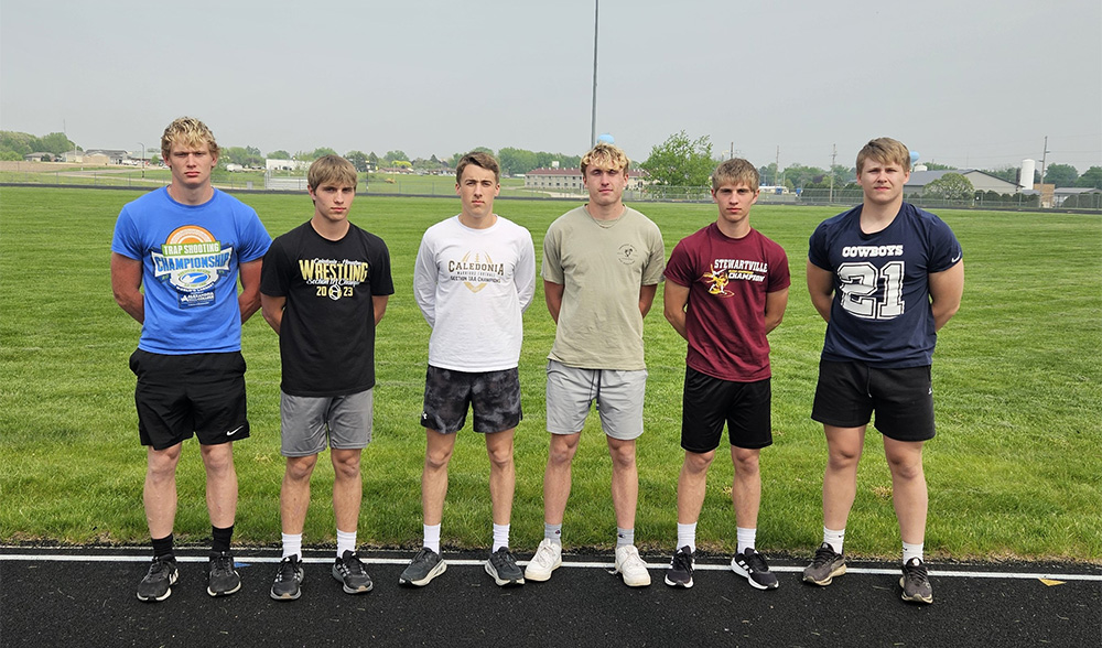 On the guys’ side, St. Charles (1198.5) won the section over LFCMC (1150), GMLOKS (1099), and RPH (1090.5) while Chatfield (721) took 10th of 21 teams. Per second and fourth place Wild Card finishes, Alex Aiken’s LFCMC group and Rebecca Young’s GMLOKS squad each made state, doing so sixth and fourth years in a row respectively. The Burros were led by Jayce Kiehne’s two first places (800 > 1:58.09, 1,600 > 4:30.08). It was his first 1,600-meter this year. Boston Wright tied for first in the Pole Vault (11’6”). Lucas Nikoloski (2nd Discus, 8th Shot), Brody Niemeyer (4th Shot), and Michael Rein (4th Discus) held down the throws. Henry Liew (2nd T-Jump, 10th L-Jump), Greg Kennedy (6th 200, 8th T-Jump), and Will Harvey (8th 110-H, 8th 300-H) had two individual top 10s. The 4×400 (Isaac Snyder, Luke Ruen, Kyle Daniels, Kiehne) took second, the 4×800 (Jaxon Huntington, Maddex Rindels, Daniels, Ruen) fourth, and the 4×200 (Mason Howard, Davis Penhollow, Liew, Snyder) fifth. Riley Grant (8th 3,200), Howard (8th 400), Snyder (9th 800), Ruen (9th 1,600), and Parker Krage (9th P-Vault) also finished top 10. Leading GMLOKS were Tate Georgen (3rd 800, 3rd 1,600) and Kaleb Yunker (2nd 300-H, 5th 110-H). Sam Snitker (2nd High Jump) and Ayden Howard (3rd T-Jump) finished top three. Landon Chilman (3rd 300-H, 9th 110-H) and Beau Wiersma (6th L-Jump, 8th 200) had two top 10’s. The 4×200 (Howard, Bently Wiersma, Zach Reiland, Nathaniel Drees) and 4×400 (Drees, Erik Shaw, Seth Howard, Georgen) each took third, the 4×100 (Beau W., Chilman, K.D. Reiland, Howard) fifth. Brede Nelson (8th) and Dylan Schultz (10th-tie) were top ten vaulters. Bently W. (9th L-Jump) and Carter Glynn (10th 3,200) also finished top 10. RPH was led Quintin Betthauser’s two firsts (110-H > 16.15; 300-H > 42.69). Gregg Gile won the Triple Jump (40’4 ½”). Ryan Prinsen (800, P-Vault) had two fourth places. Casey Herek (3rd 110-H, 9th 300-H), Chace Drazkowski (3rd Discus, 9th Shot) and Aaron Ploetz (5th 3,200, 7th 1,600) had two top 10s. The 4×800 (Tyler Betthauser, Isaac Rasmussen, Matthew Sprague, Prinsen) took second, the 4×400 (Q-Betthauser, Treyton Hegland, Hunter Rislov, Prinsen) fifth. Matthew Hengel (7th Discus), Rislov (7th 400), T-Betthauser (8th 800), and Alex Wedl (10th H-Jump) also finished top 10. Chatfield’s Callen Backer won the Shot Put (44’9”) and Jake Stevens finished sixth. Keegan Patten (6th 300-H, 7th 110-H) had two top 10s. Vaulters Lane Schmaltz (6th) and Zach Whalen (7th) finished top 10. Events each had 30 to 40 athletes, relays 15-20 teams.