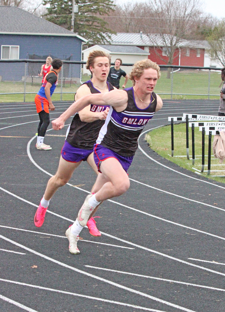 Hamline Elite Meet (GMLOKS’ Chantle Reiland and Tate Goergen, Caledonia/Spring Grove’s Fischer Wait, and LFCMC’s Brody Niemeyer competed at this select meet featuring all classes. Goergen (1:53.75) took third of 12 in the 800 and Reiland (12.34) third of 18 in the 100. Wait competed in the 400 (7th of 9), Niemeyer the Shot Put (12th of 12))