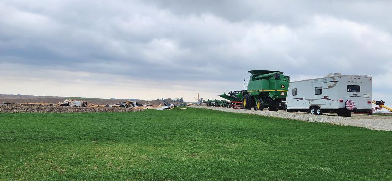 While the building was a total loss, damage to the equipment inside was limited. The planter, combine and bean head sustained some damage but the equipment remained standing in place.