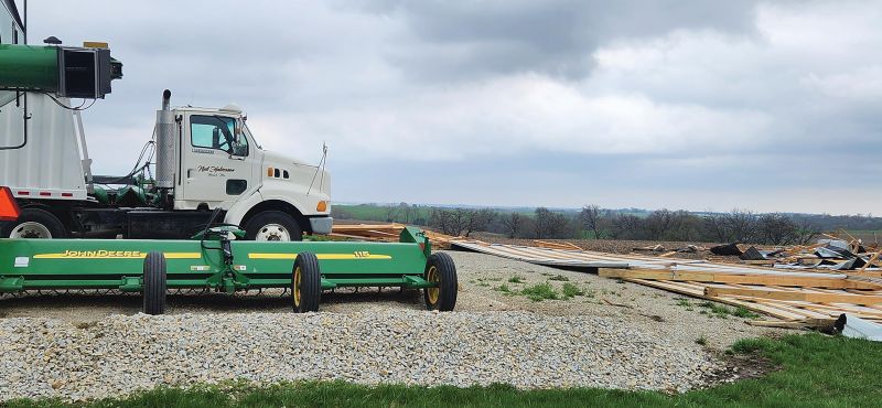 Monday night’s storm on April 13, 2026, brought a Tuesday morning surprise for Neil and Lois Halverson of Mabel. When they awoke, they found their pole building, constructed in 2017, had been blown apart during the night’s high winds. They are unsure whether a tornado was involved.