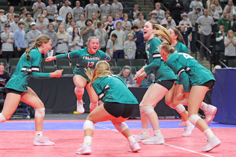 It is unbelievably uncanny how momentum can mean so much in the game of volleyball. And just as weird how it can flip on specific things or at the drop of a dime. Fillmore Central (6-seed, Section 1A Champs, 17-15) dealt with it in the state quarterfinals versus #7 New Life Academy (3-seed, Section 4A Champ, 17-12) of Woodbury. For two plus sets, Travis Malley’s Falcons had the Tigers’ number. FC did it with serving, serve receive, and defense. New Life Academy’s serve receive struggled. FC had at least three aces in all five sets. The Tigers, at times through the first two-plus sets of the match, were all discombobulated. They hit balls out of bounds. They sent sets to the upper official. They got called for two hits. Nonetheless, the first was a set that went back and forth. NLA led 5-1 to start. FC then scored 10 of 11 for a 10-6 lead. The Tigers later went on a 5-0 run and led 16-14. FC then spurted to 9-3 to lead 23-19. With just five kills up until its final four points, FC ended with four straight kills, two each by Ella Dahly and Maddie Zwart for the 25-20 win. New Life had nine hitting errors in the set. Game two, the Tigers’ setting struggled with six errors while their serve receive gave up five Falcon aces. FC went on the all-critical 7-0 run to take a 13-7 lead. Hannah Vaalemoen served six of those points. It led to a 25-18 set win and a 2-0 FC lead. The Falcons were then seemingly closing in on the win in game three. They had all the momentum with a strong start and an 11-3 lead. But NLA then had a player down to injury, and FC lost its surge. Maybe playing for their fallen comrade, or just getting a big break to regroup, New Life Academy became a different team. Gone were the errors. They outdid FC two-to-one on points after the injury to get close at down 17-15. FC went back-and-forth with them for a while. The Falcons even got to set point at 24-22. But getting eight kills from Marisa Michaelis in the set, NLA staved off four more match points, 24-23, 25-24, 26-25, and 27-26. Finally, an FC error and a Michaelis kill gave the Tigers the set, 29-27. They rode that momentum to a 12-4 start in game two and FC never got closer than four. NLA tied the match 2-2 with a 25-20 win. But then the Falcons regrouped. Early in game five, they grabbed a 6-3 lead. Senior Ella Dahly later put away a kill, followed with an ace, and then served four more points, giving FC a 12-5 lead. NLA’s serve receive again was dicey. Aubrey Daniels finished off the match and set with back-to-back aces. Fending off the dreaded up 2-0, then lose, FC pulled the upset in five sets (25-20, 25-18, 27-29, 20-25, 15-7). The Falcons had 17 service aces! Zwart (14 kills) and E-Dahly (12 kills, 12 digs, 3 aces) led the offense. Kyla Hellickson (8 kills, 17 digs) did the best all-around work. Setters Daniels (16 assists, 17-17 serving, 6 aces) and Vaalemoen (26 assists, 6 digs, 24-28 serving, 5 aces) combined for 11 aces. Josie Corson (13 digs), Lauren Dahly (4 kills, 5 digs), Annika Mensink (5 kills), Katelyn Scheevel (4 kills), and Lily Miller (8 digs) helped. Michaelis (match-high 22 kills, 12 assists, 8 digs), who made the All-Tourney team, neared a triple-double. Makenna Lilly (11 kills, 9 digs) also had double-digits spikes. Setter Ella Borner (29 assists) and libero Ella Servais (22 digs) also did work for NLA. The Tigers outkilled FC 51 to 48. They also outblocked the Falcons. But FC had all those aces and only six setting errors to NLA’s 11.