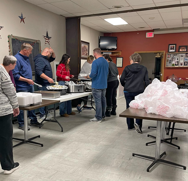 The dinner is completely funded by freewill donations. Gabby emphasized that they never care whether someone pays or not. The donations each year have always covered the cost of the dinner with the remaining funds being distributed to non-profits. 2020 was a tough year for the dinner, but it was also the year that they received the most in freewill donations as many were feeling extra generous. The last few years, the extra funds have been given to the Servicemen’s Club as a thank you for allowing the family to use its kitchen and dining area for free. “If not for them, we wouldn’t be able to do it,” Gabby said. After the 2021 tornado, the money was used to purchase more trees for the park since so many of them had been destroyed. Another year, it was used to help an anonymous family that had been selected by Fillmore Central.