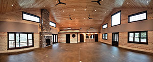 The 2,000 square foot gathering hall gleams with abundant natural light, custom wood-paneled walls and vaulted ceiling, and spectacular views. Facing the stunning bluff scenery and award-winning Root River State Trail is a 50-foot covered porch, complete with lights and ceiling fans for comfort in all times and seasons. Also, the center features a fully stocked, modern kitchen, high-end projector and sound system, and two breakout rooms.