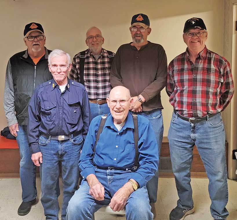 Some of the members of Caledonia American Legion Post 191 at a recent meeting. Seated: Gordon Klankowski; standing from left to right: Joe Tollefson, Lyle Goetzinger, Commander Arlyn Pohlman, Greg Middendorf and Myron Falken.Photo submitted