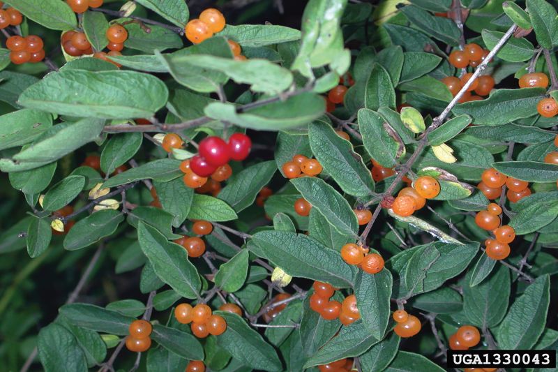 There are four types of non-native honeysuckles in Minnesota: Tartarian, Morrow’s, Bell’s (hybrid of Tatarian and Morrow’s) and Amur honeysuckle. The differences are hard to distinguish, but most easily determined by differences in flower color. These multi-stemmed shrubs are native to eastern Asia and grow up to 15 feet tall. Much like Buckthorn, they grow densely, shade out native plant species in the understories of woodlands, and often found densely populated along fence lines. The berries contain multiple seeds each, which help this species spread quickly. Listed below are some identifiers of honeysuckle.