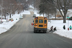 The other key to the puzzle is hurried drivers. “I have had people asking me to have the drivers drive faster than the speed limit because if they get behind the bus they are late for work,” says Mike Bernard, owner of Bernard Bus Service, which serves Chatfield, Mabel-Canton, and Rushford-Peterson School Districts. “I tell them to leave earlier, we depart the shop at the same time every day, adjust your schedule accordingly.”