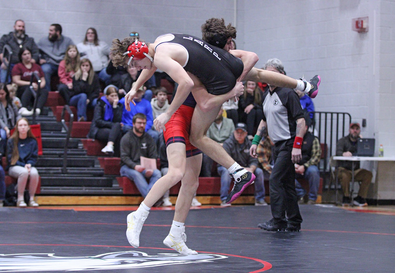 In Lewiston, LARP hosted GMLOS and Wabasha-Kellogg. The hosts posted a 53-22 win over GMLOS and beat W-K 64-12. Versus the Bulldogs, Carter LaFee (107), Owen Lange (127), Michael Alexander (133), Quintin Betthauser (145), Carter Cady (152), and Nolan Happel (160) had pins. Christian Zibrowski (121) and Zach Plank (189) won by forfeit. Chase Drazkowski added a 21-1 tech fall. GMLOS got pins from Ayden Stier (172) and Rowan Sween (285). Lincoln Lunning (114) won by forfeit, Cael Smith a 10-0 major decision. GMLOS beat W-K 54-18. Parker Armagost (127), Smith (139), and R-Sween (285) won by fall. Logan Gregerson (107), Calum Sween (152), Drake Payne (189), and Connor Popenhagen (189) won by forfeit. Felix Christenson (145) won a 17-2 tech fall, Teague Alden (133) a 13-5 major decision, and Zac Gehling (160) a 14-10 decision. LARP match-by-match stats versus W-K were not known. After the Westfield Duals (See ‘Wrestling), LARP is 5-1 in the TRC, 15-4 overall.