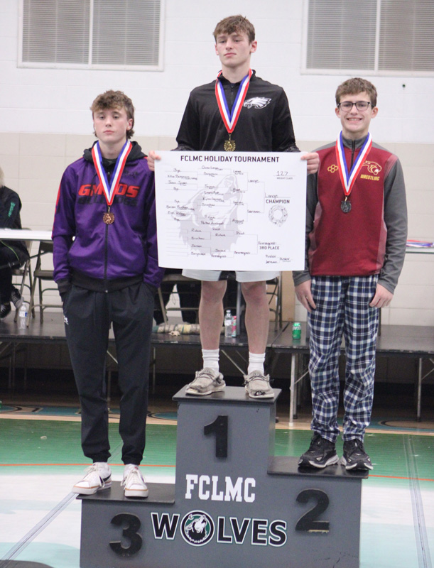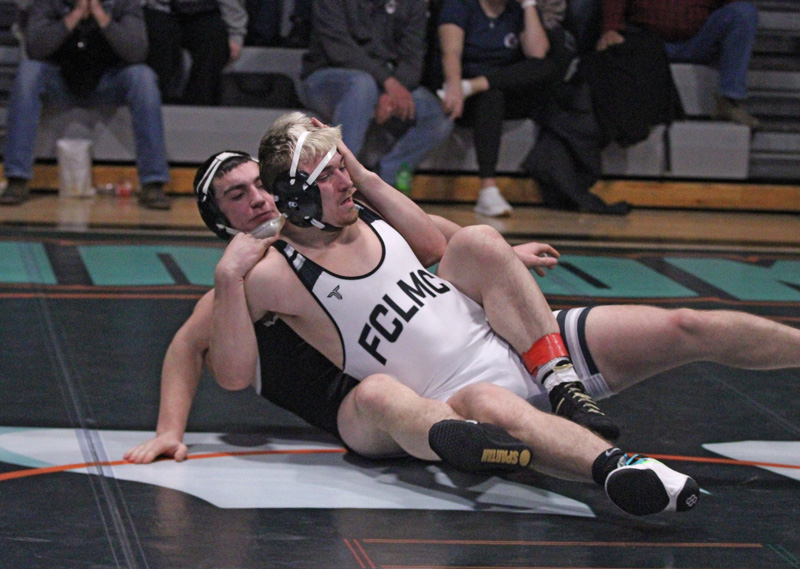 Pine Island Triangular > FCLMC 24, Pine Island 43 (Kane Larson (172), Cole Sass (189), and Beau Lacey (285) had pins for the Wolves. August Pfeffer (121) and Ashton Newman (145) won 5-4 and 17-12 decisions. FCLMC forfeited 114 and 133); FCLMC 23, Westfield 52 (Grant Daniels (139), Quinci Kaase (152), and James Cullen (215) won by fall for the Wolves, while K. Larson (172) won a 20-4 tech fall. FCLMC forfeited 114 and 133 again. Wolves > 0-2 TRC, 1-8 overall)