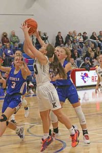 Rushford-Peterson 30, Caledonia 68 (C: Paige Klug 16 pts; Alexis Schroeder 10 pts; Jovial King 9 pts, 9 rebs. RP: Kaylee Ruberg 13 pts, 7 rebs. Eleven Caledonia players scored. They hit nine threes. R-P hit zero)