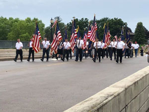 Pictured above are Fillmore County Veterans marching across the bridge from the Preston Trailhead to the WWI Entrance at the fairgrounds. A few hundred people were in attendance on Tuesday night, July 16, 2019, for a historical event commemorating the celebration held 100 years ago on August 26, 1919, that welcomed home the soldiers from WWI. A bonus this time was a flyover of three vintage airplanes.